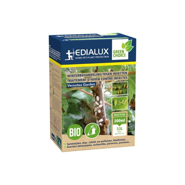 Vernotex Garden is een insecticide die je het gehele jaar door mag gebruiken ter bestrijding van spintmijten, bladluizen, dopluizen, schildluizen, wolluizen en wantsen op sierplanten, heesters en bomen.