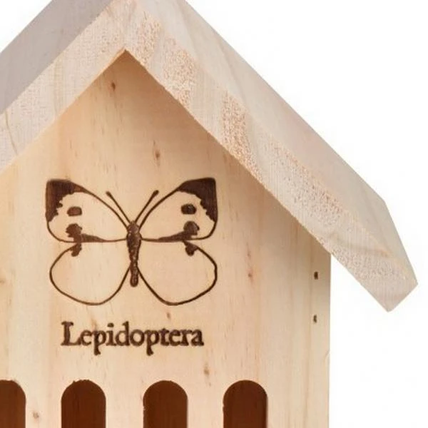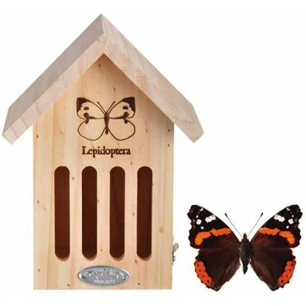 De vlinderkasten met hun 4 sleuven zijn ontworpen als een miniatuurhuisje. Niet alleen erg decoratief maar ook geliefd bij vlinders zoals de kleine vos, de dagpauwoog en de citroenvlinder die graag in een gat kruipen voor een winterslaap tijdens de late herfst en winter.