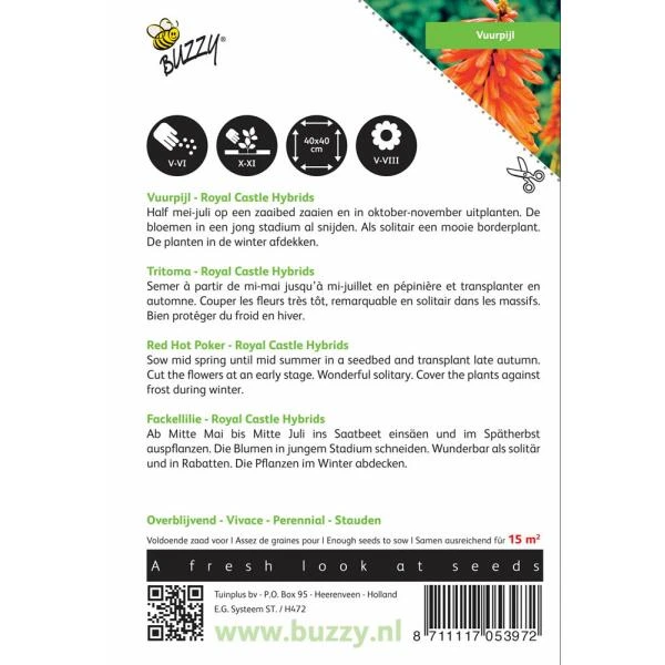 De planten met hun grasachtige blad ontwikkelen bloeistengels met bloeiaren die inderdaad aan brandende ‘vuur’ pijlen doen denken. Vuurpijlen zijn schitterende borderplanten, maar ook in boeketten verwerkt is het effect groot en ze blijven op de vaas lang goed. Ook als solitairplant geschikt.