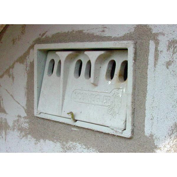Mussennestkast in duurzaam houtbeton. Huismussen zijn echte koloniebroeders en hun zoektocht naar natuurlijke nestplaatsen wordt steeds moeilijker. Hun naam verklapt het al een beetje, ze houden ervan in de buurt van huizen te wonen. Hang deze nestkast dus tegen een schuur of woning of beter nog, gebruik ze als complete inbouw in een nieuwe constructie.