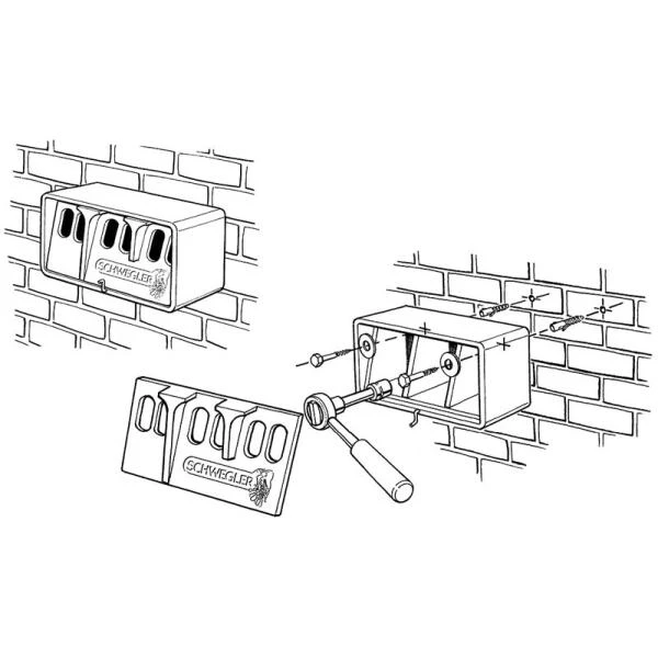 Deze nestkast heeft drie broedkamers en 6 invliegopeningen. Ze is gemakkelijk te reinigen omdat het complete voorpaneel kan worden weggenomen. Ook de ringmus kan deze kast occasioneel bewonen.