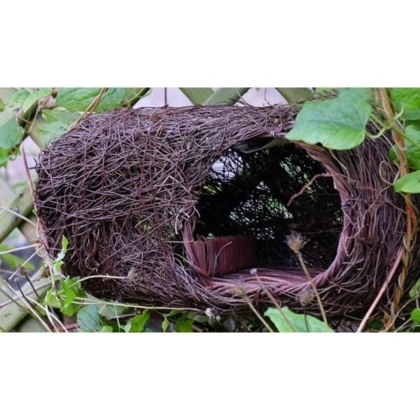Deze unieke nestbuidel is ontwikkeld in samenwerking met Simon King, natuurkenner en wildlife cameraman, gebruik makend van zijn jarenlange kennis. Roodborstjes geven de voorkeur aan een open nestkast die makkelijk toegankelijk is maar toch verborgen is voor predatoren. De ingang is open maar de nestruimte zelf is verborgen achter de zijwand en bedekt door het dak. De basis van de buidel is van rotan met een lage scheidingswand tussen de ingang en de nestplaats.