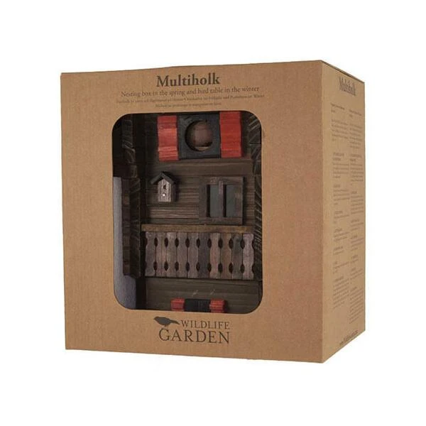 Vogelhuis en voederhuis onder 1 dak ontworpen naar het voorbeeld van een traditionele bergchalet! Dit huisje is een combinatie van een nestkast en een voederhuisje. Ze worden ambachtelijk vervaardigd in Zweden en kregen reeds een award voor het meest innovatieve, decoratieve en functionele tuinproduct.