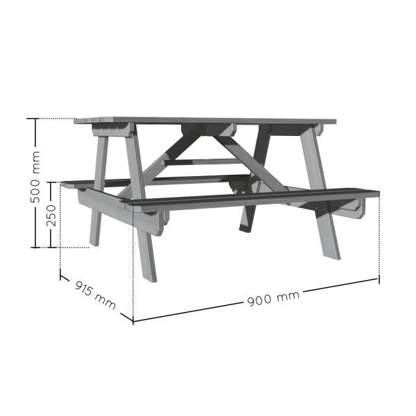 Leuk gebeitste picknickbank voor kinderen in een mooie taupe-grijze kleur. Deze bank biedt plaats aan 4 kinderen en past ik elke tuin groot en klein.