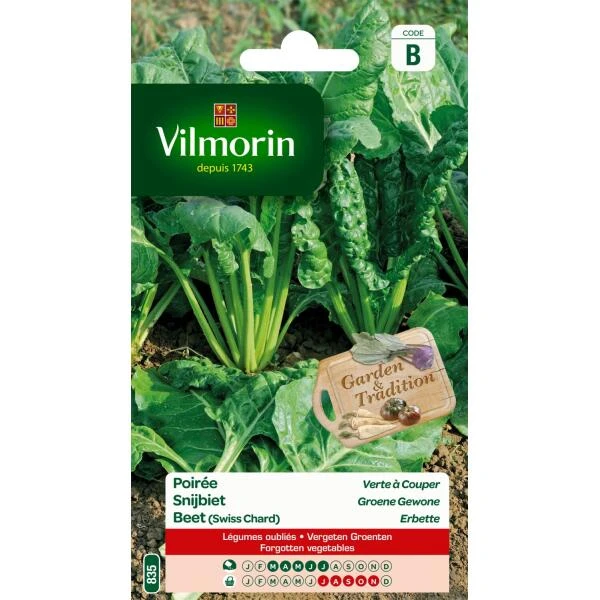 Deze variëteit Gewone groene Snijbiet wordt ook “spinazie-snijbiet” genoemd en wordt geteeld voor de jonge blaadjes die regelmatig afgesneden worden en gebruikt worden zoals spinazie. Snijbiet is rijk aan ijzer, proteïnen en vitamine A, B en C.