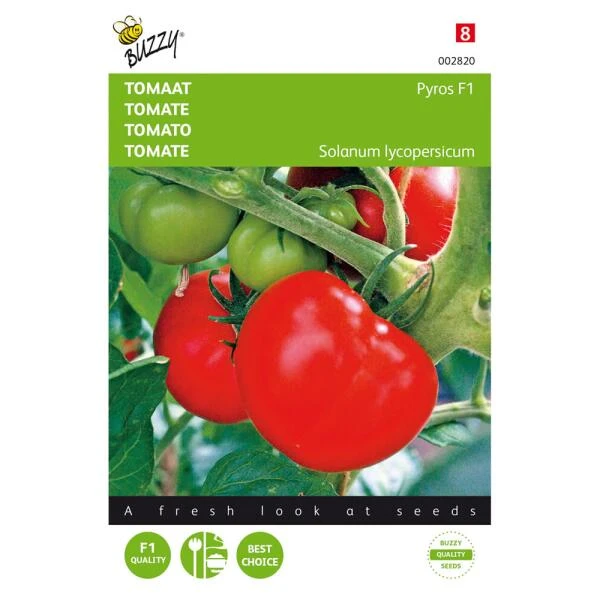 Zaden Tomaten pyros F1 hybride zaaien: vanaf eind februari in ’n zaaibakje bij 20°C of later buiten onder glas. Na verspenen, in een kasje of in potten uitplanten.