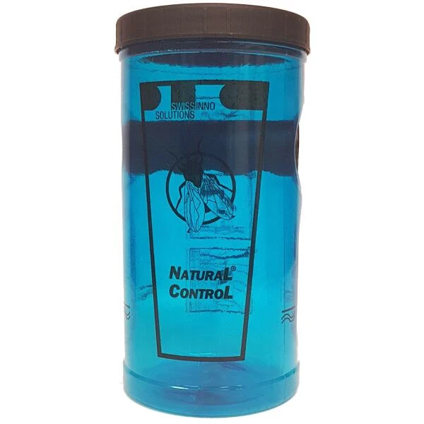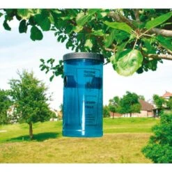 In het bijgevoegde zakje zit een lokstof die zodra vermengt met water vliegen aantrekt. De val dient gevuld te zijn met water zodat de vliegen erin blijven. Plaats deze val op een veilige plaats of hang de val met behulp van een draad op een rustige, zonnige plaats in een boom, weg van de plaats die je wil beschermen.