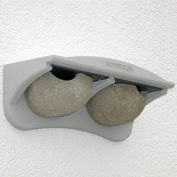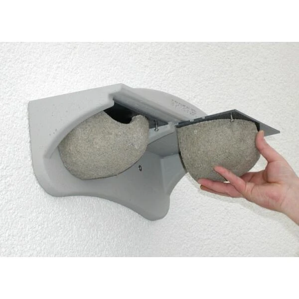 Huiszwaluwen houden ervan in kolonies te broeden, dus met een dubbele nestkom maak je steeds meer kans op bewoning. Huiszwaluwen bouwen hun nest aan de buitenkant van gebouwen of constructies onder een overhangend dakgoot of wand. De Schwegler Nr. 11 is danig gebouwd dat je hem eender waar kunt hangen. De ‘overhangende dakgoot of wand’ is meteen inbegrepen. Dit unieke ontwerp kan je dus eender waar ophangen voor het lokken van deze insectenvangende vogels.